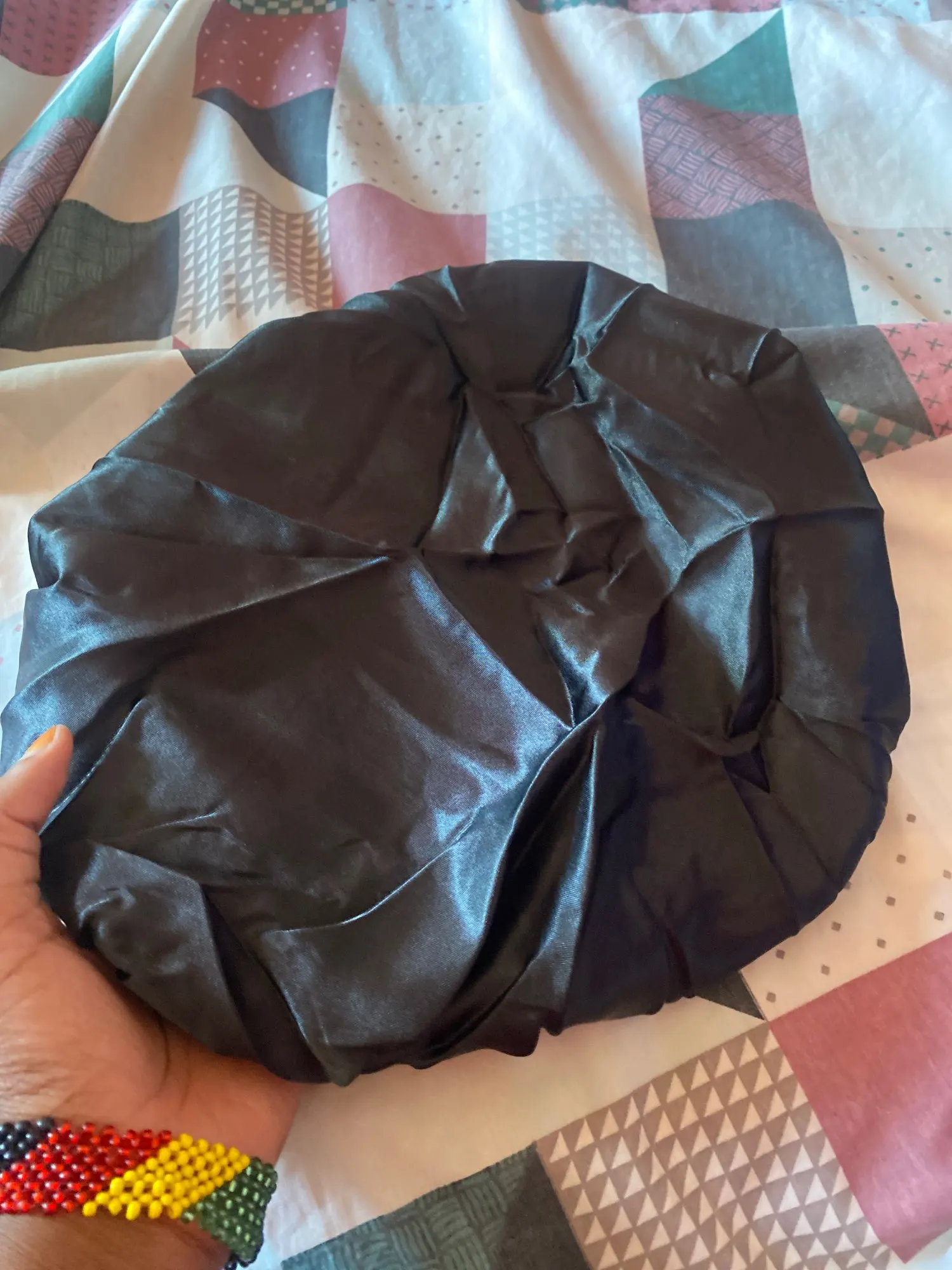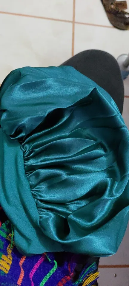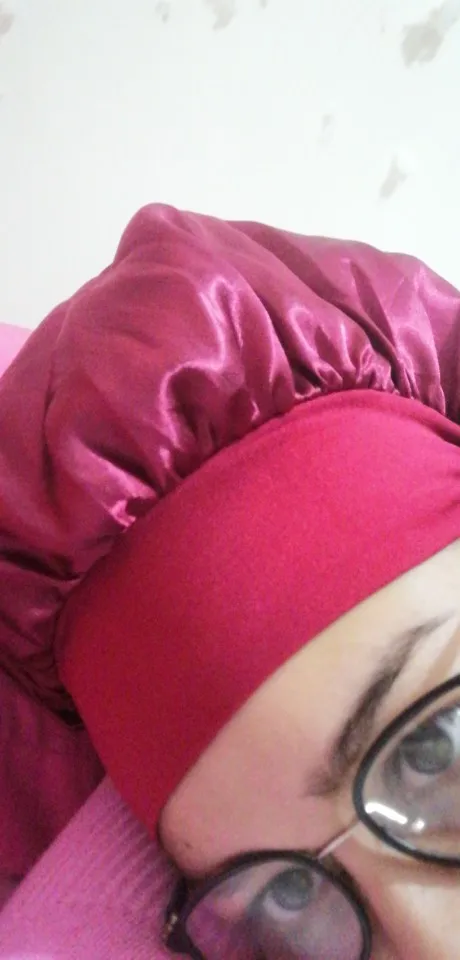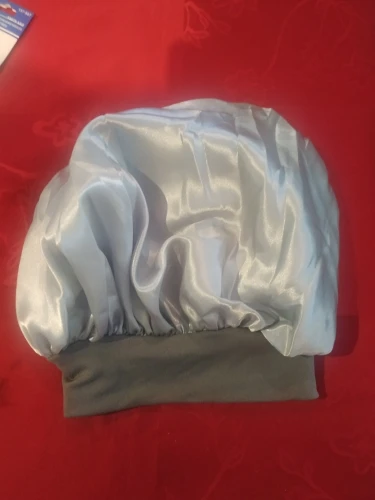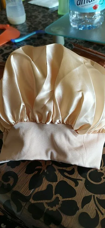 Это пришло очень быстро! Доставка в сочетании с другими вещами, которые я покупаю в других магазинах. Шляпа изготовлена из тонкой, очень мягкой ткани, как блестящая Атлас. И вокруг эластичной ткани. Это очень удобно, это не сжимает голову.
