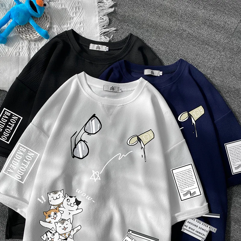 Футболка с короткими рукавами для мужчин, лето 2022, черно-белая футболка с принтом, футболки, брендовая модная одежда размера плюс M-5XL с круглым вырезом