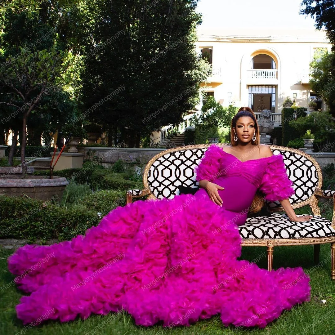 Платья для беременных из спандекса, тюля, с длинным рукавом и шлейфом