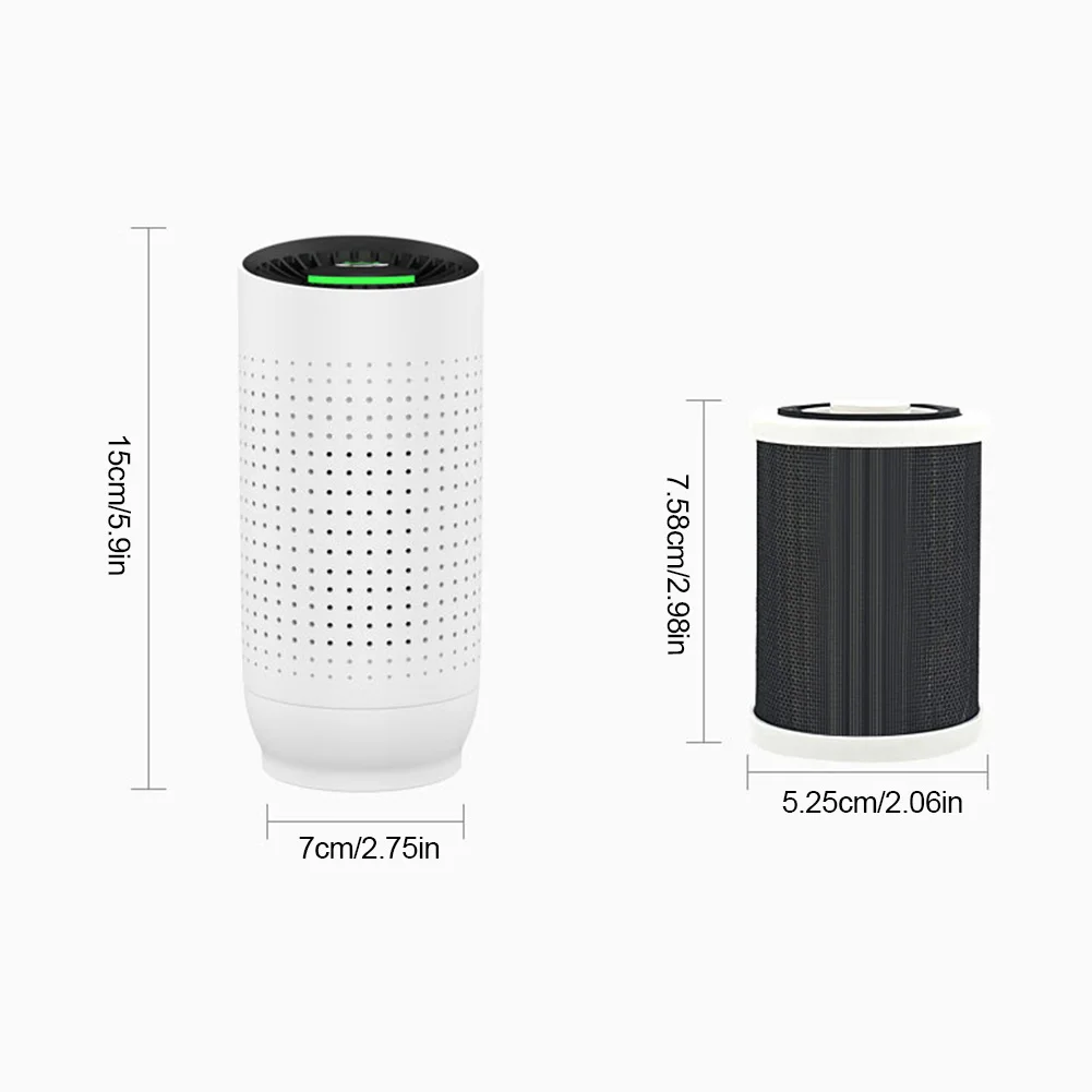 1. Большой вред для здоровья: загрязненный воздух может вызывать различные заболевания легких, что наносит большой вред здоровому образу жизни, особенно замкнутое загрязнение окружающего воздуха, например, внутри автомобиля, более серьезное и вредное.2. Портативные автомобили: если вы находитесь в закрытом пространстве в течение длительного времени, вы будете знать о важности циркуляции свежего воздуха. Чистый воздух не подходит для дома, поэтому мы включаем 12-вольтовый автомобильный адаптер постоянного тока, чтобы вы могли очистить воздух, куда бы вы ни отправились.3. Бесшумная работа: сидя на кровати ночью, слушая громкий звук воздухоочистителя? Больше никогда! Спящий режим имеет максимальный рабочий шум всего 22 децибел и поэтому даже тише, чем секретная или небольшая библиотека.4. Умный датчик качества воздуха: Этот очиститель воздуха оснащен умным датчиком качества воздуха с трехцветсветильник том, чтобы показать качество воздуха в вашей жизни. Зеленый означает хороший воздух, желтый-умеренный воздух, а красный-повреждение воздуха.5. Семиступенчатая Фильтрация: настоящий HEPA-фильтр 7-в-1 помогает вам легко дышать, удаляя частицы размером до 0,1 микрон. Человеческие волосы имеют диаметр примерно 50 микрон, поэтому наш фильтр удаляет частицы в 500 раз меньше, чем человеческие волосы.Характеристики:Место использования (использование не ограничивается следующим списком)Семейные и жилые помещенияОфисГаражХранилищеНазвание товара: маленький воздухоочистительСпособ очистки: 3 композитных фильтраСрок службы фильтра: нормальное использование 3-6 месяцев (в зависимости от среды использования срок службы фильтра отличается)Питание: DC 5V / 1A USBПлощадь применения: 3-8м2Мощность: 3,5 ВтРазмер: около 70x150 мм/2,76 * дюймаМатериал: ABSОбъем воздуха: 3 уровняФильтрующий элемент: H13 Комплектация:Очиститель воздуха * 1Фильтрующий элемент * 1USB * 1Руководство * 1