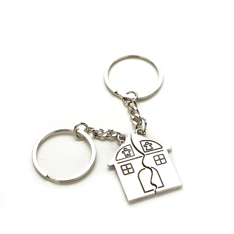 Материал: сплавЦвет: серебристыйДом Размеры: 2,3 см * 3,4 смВ общей сложности Длина: 8,7 смФункция: удобный инструмент для хранения ваших ключей в цикле. Также может быть как украшение для детализации вашего мешка или другого устройства, как вы хотите. Парный дизайн, который отлично подходит для любителей.