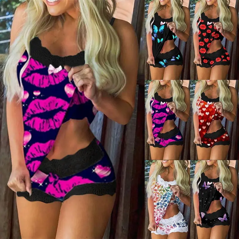 Пижамный комплект Женский с принтом бабочки, v-образный вырез, эластичный атласный, кружевное сексуальное нижнее белье, ночная сорочка для Пижама домашняя одежда
