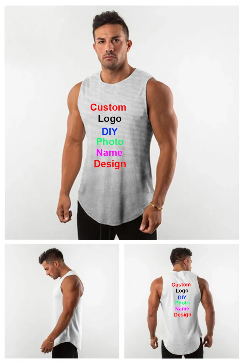 Брендовый логотип, спортивная одежда, подгонянная фото сетка, быстросохнущая фитнес Стрингер, майка для мужчин, бодибилдинг, жилет, тренировочная рубашка без рукавов