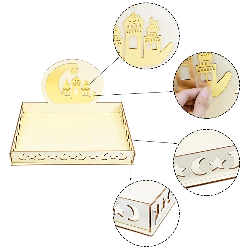 ИД Мубарак деревянные украшения Рамадан Золотая Луна деревянный десертный поднос для дома мусульманский праздник Декор для вечерние ринки деревянные поделки подарки