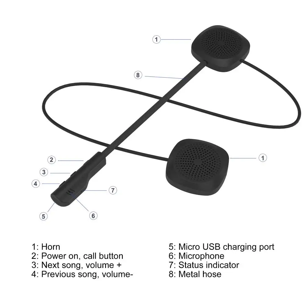 Мотоциклетный шлем EDR Bluetooth 5,0 наушники для мотоциклетного шлема для верховой езды домофон свободные руки наушники Колонки Характеристики: Наушники оснащены чипом Bluetooth 5,0, что обеспечивает стабильное соединение и быструю передачу. Он оснащен шлемом, обеспечивая безопасность вождения. С Bluetooth 5,0 EDR, вы можете наслаждаться HiFi стерео. Функция автоматического ответа. Мощность будет отображаться на вашем телефоне. Название товара: наушники Bluetooth: 5,0 Пространство передачи: около 10 м Частотный диапазон: 2,402 ГГц-2,480 ГГц Диапазон микрофона: ≤ 1 м Напряжение зарядки: 5 В Батарея Ёмкость: 3,7 V 180 мА · ч (входит в комплект) Время зарядки: менее 1,5 часов Время работы в режиме ожидания: Менее 160 часов Время воспроизведения: менее 8 часов Характеристики: перезаряжаемый, портативный, Bluetooth Размер: 237 мм x 45 мм x 30 мм/9,33 "x 1,77" x 1,18 "(прибл.) Примечания: Благодаря светильник и экрана Цвет Товара может быть s светильник ly отличается из-за характеристик монитора компьютера. Возможны незначительные отклонения в размерах из-за различных измерений вручную. Посылка включает в себя: 1 х Наушники 1 х USB кабель для зарядки 2 волшебных ленты 1 x Руководство пользователя