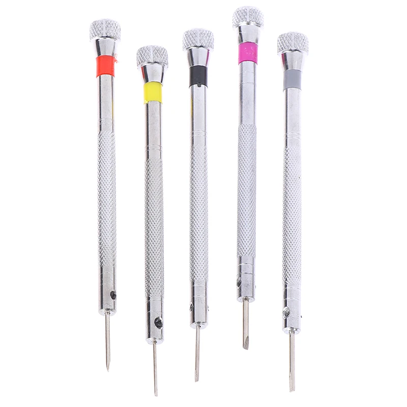 Особенности:Подходит для снятия винтов ювелирных изделий, часов, очков и т. д.Тонкое мастерство делает его точным по размеру.Изготовлен из высококачественной стали, которая является прочной и долговечной для длительного использования.5 размеров головки отвертки доступны, которые могут удовлетворить ваши потребности.Легко и удобно носить и использовать.Спецификация:Состояние на 100% абсолютно новыйТип изделия: инструмент для ремонта часовМатериал: стальШлицевая отвертка обхват головы: 0,8 мм/0,0315 дюйма, 1,0 мм/0,0394 дюйма, 1,2 мм/0,0472 дюйма, 1,4 мм/0,0551 дюйма, 1,6 мм/0,0630 дюймовПосылка:5 * отвертки