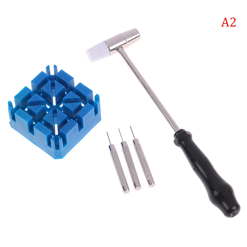 Характеристика:100% Новый брендКоличество: 5 шт./компл.Материал: металл, пластикСпециально разработан для удаления звеньев и добавления звеньев К РЕМНЯМ часовВысокое качество ~ идеально подходит для выполнения задачи5 шт. В комплект входит: 1 молоток (металлическая одна сторона, пластиковая другая),1 держатель ремешка для часов и 3 перфоратораПосылка включает в себя:1x5 шт. набор инструментов для ремонта ремешка часов