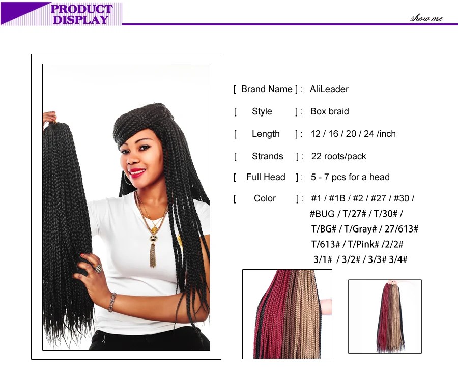 Косички Alileader 12 дюймов, 16 дюймов, 20 дюймов, 24 дюйма, 30 дюймов, косички в коробке, Детские косички для плетения, синтетические волосы для наращивания, 22 корня, 1B, чистые цвета, 1-9 шт.