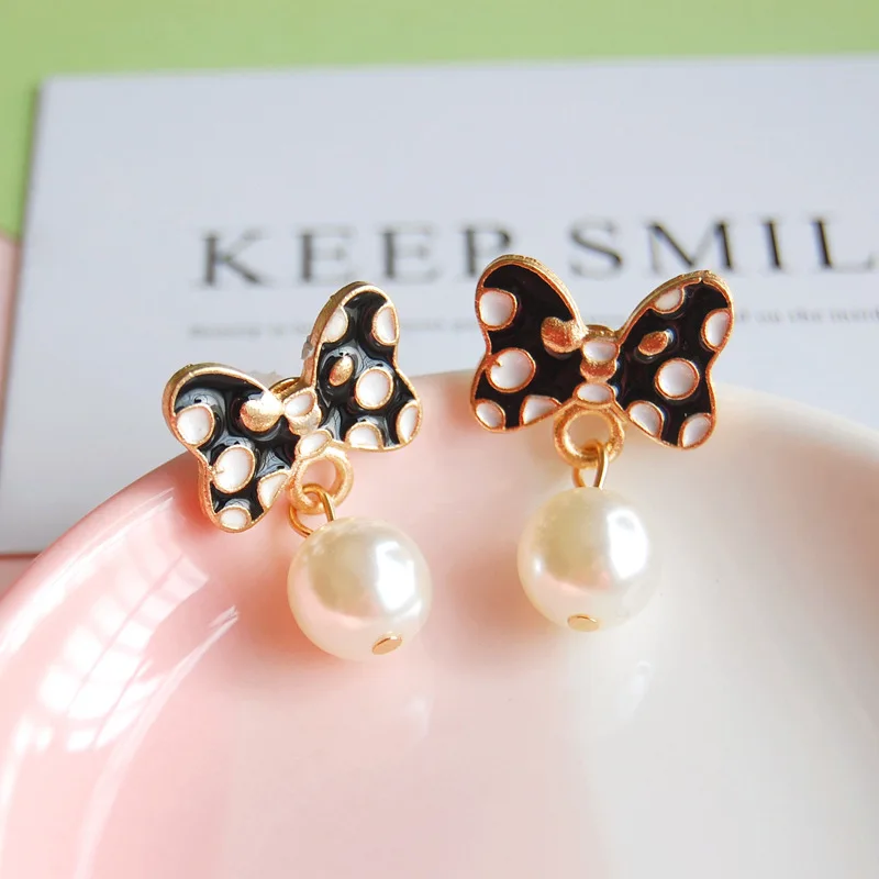 Серьги-гвоздики с жемчугом и Микки Маусом
