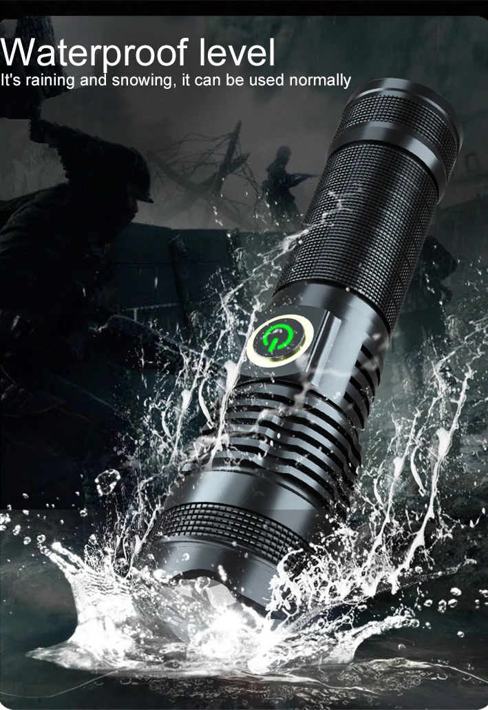 Светодиодный фонарик XHP50 высокой мощности, тактический перезаряжаемый фонарик с USB, 5 режимов, водонепроницаемый фонарь со встроенной батареей, 6000 люмен