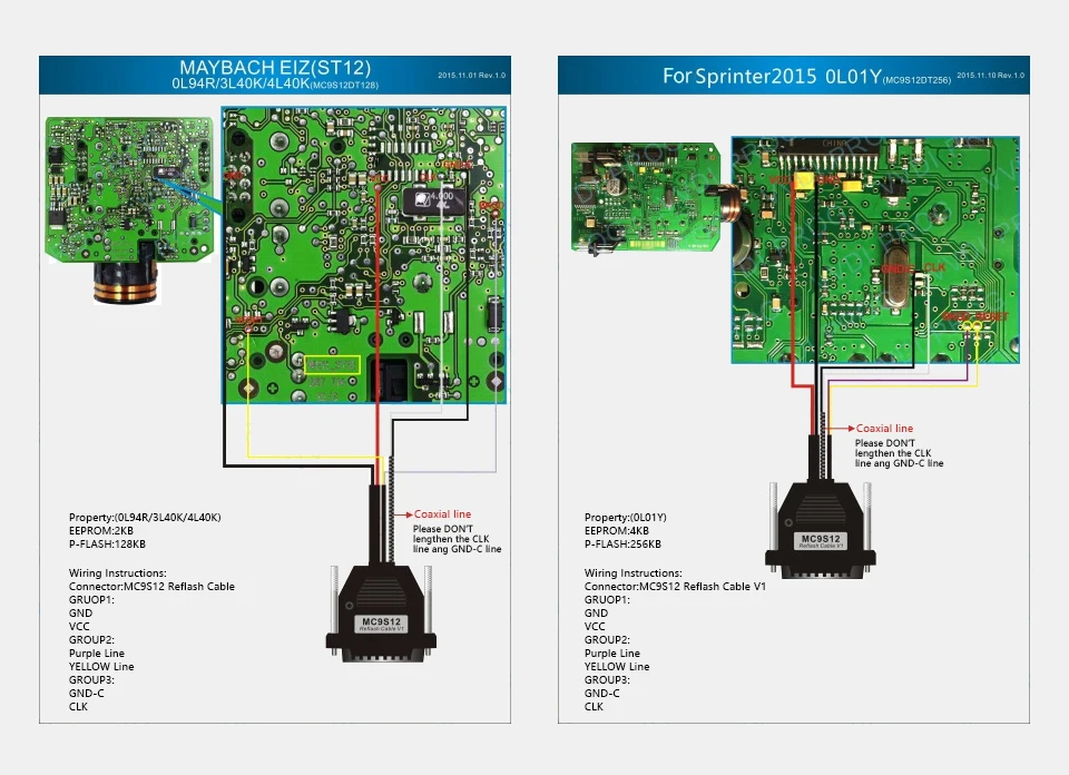Функция: чтение и запись MC68HC(9)12, V850, H8X, R5C чипы серии, Текущая версия V3 Способ использования: Пайка линии на штифте чипа перед чтением и записью Примечания: (1) Пожалуйста, проверьте все линии подключения, убедитесь в правильности и надежности Подключение (2) Пожалуйста, не удлиняйте линию CLK и GND-C, возможно, это приведет к считыванию данных Сбой
