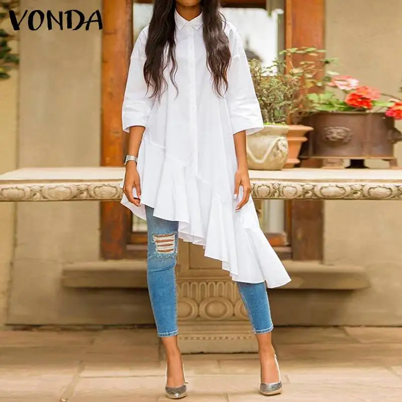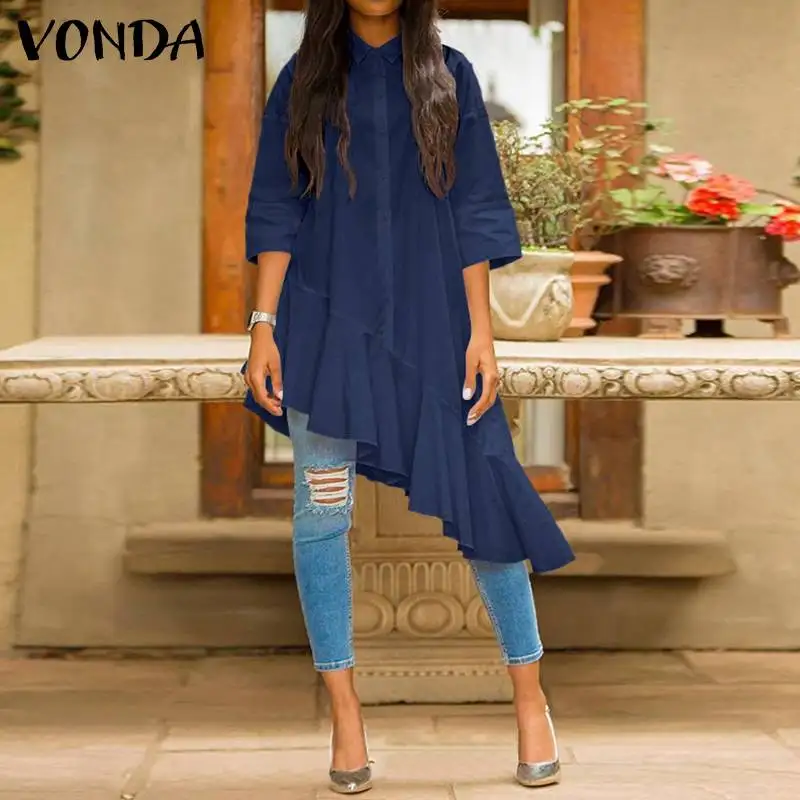 Женские Элегантные рубашки 2022 VONDA Повседневная Туника С АСИММЕТ...