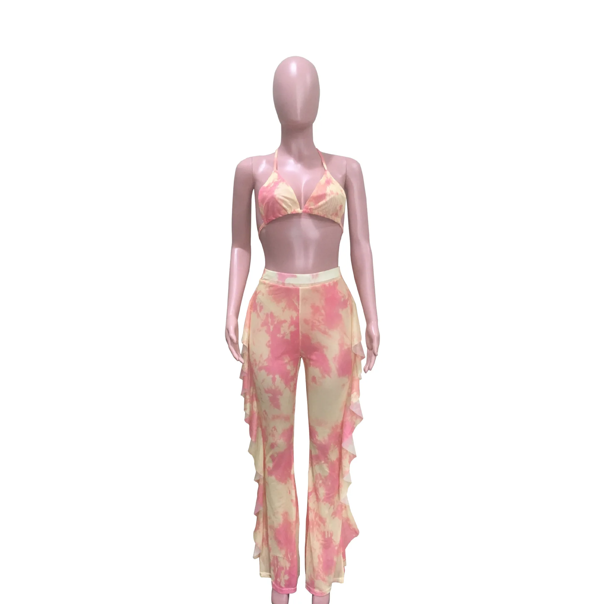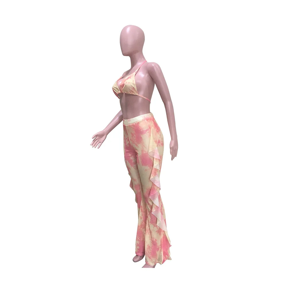 Тай-дай сексуальный бюстгальтер и брюк из сетчатого материала, купальник для женщин, комплект из двух предметов топ + брюки с рюшами пляжное Летнее Детское платье Модная одежда для детей