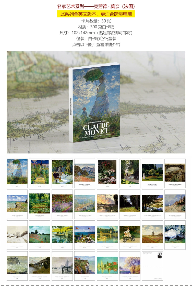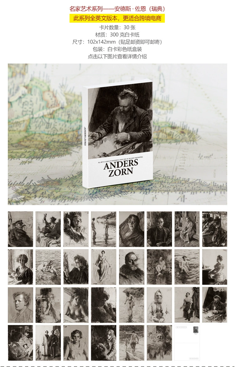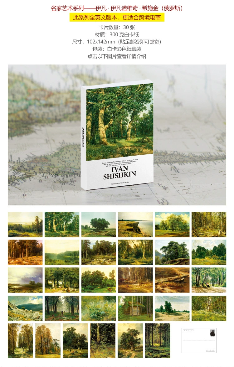 Открытки с конвертами и изображениями известных художников, 30 листовнабор