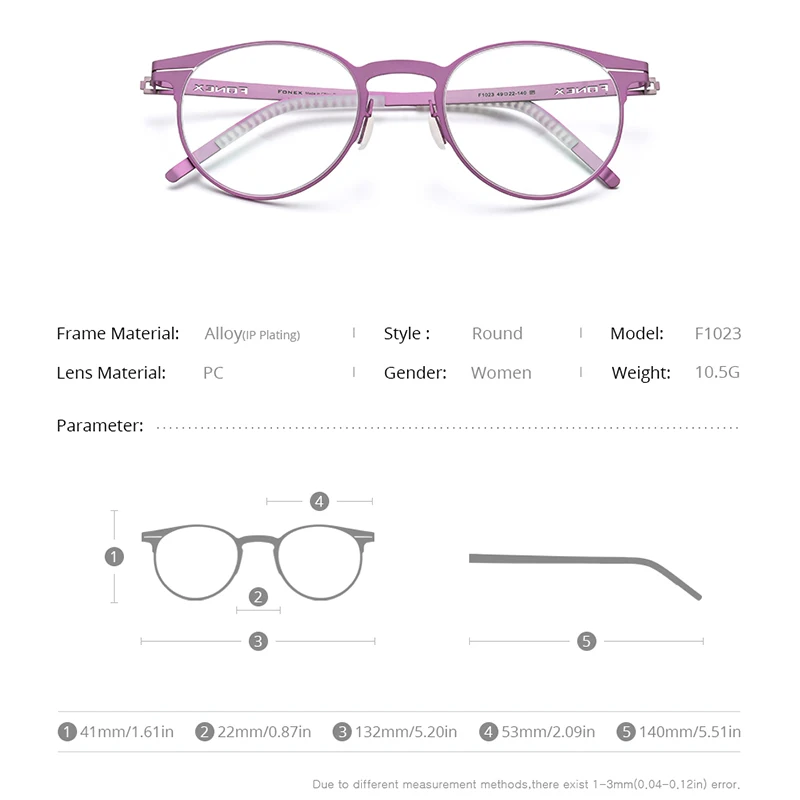 FONEX Оправы для очков из чистого титана для женщин и мужчин, кругл...