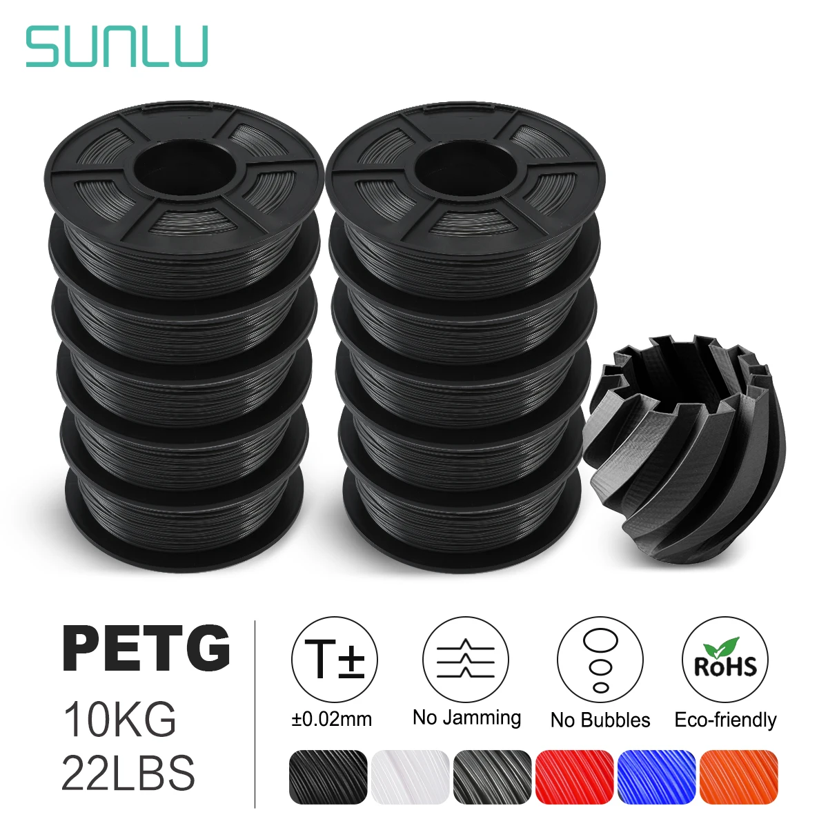 SUNLU материал для 3D-принтера PETG 1,75 мм с катушкой, высокая прочность, без пузырьков, 10 рулоновкомплект, нить PETG 10 кг