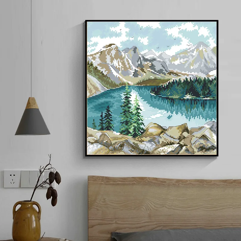 Узоры для вышивки крестом, пейзаж озер и холмов, вышивальные наборы...