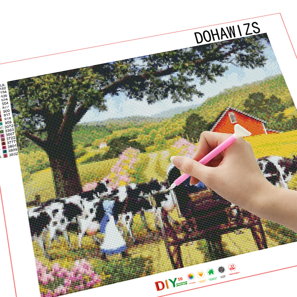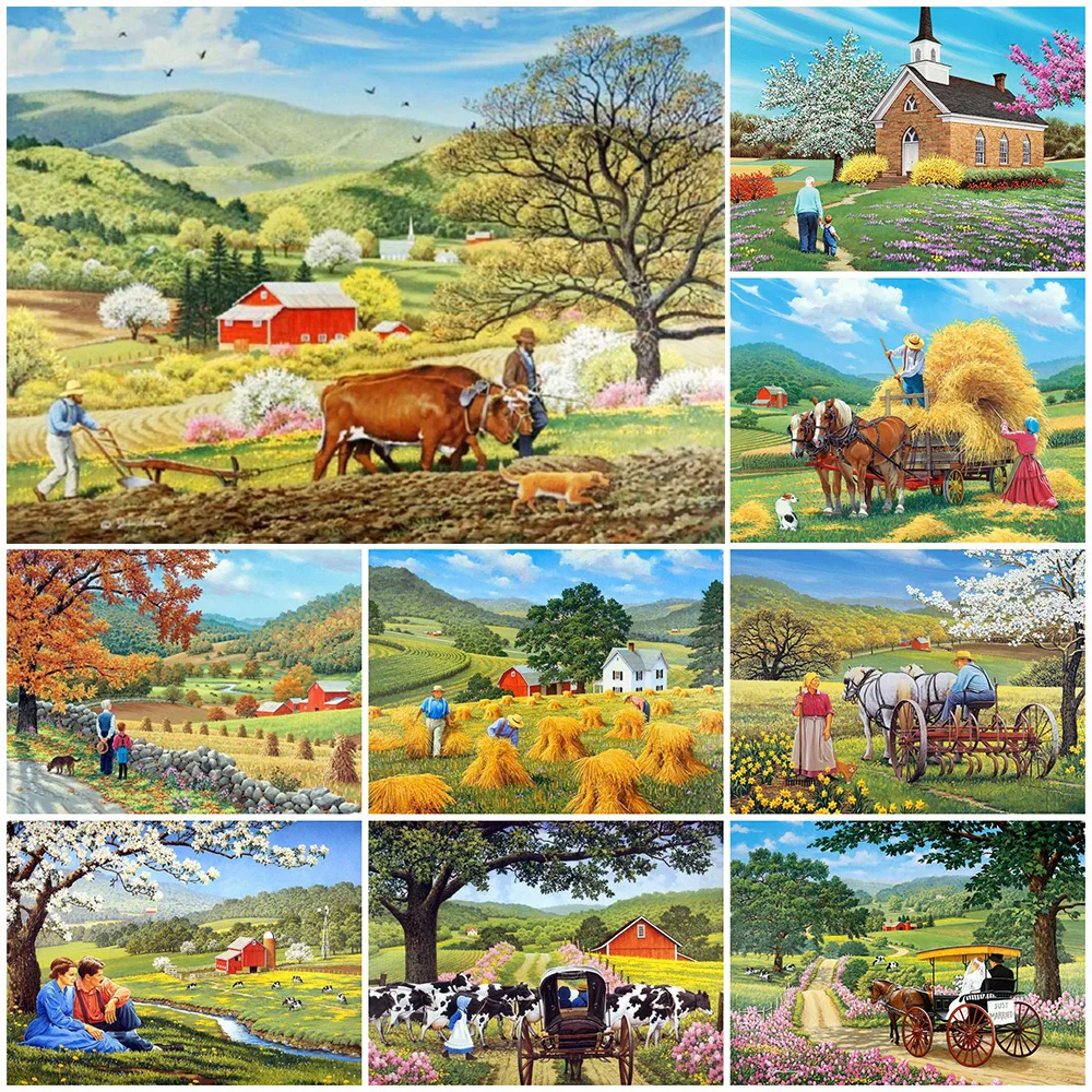 5D алмазная живопись сделай сам, ферма, ландшафт, дом, полная мозаика, искусство, алмазная вышивка, настенные украшения, подарок ручной работы