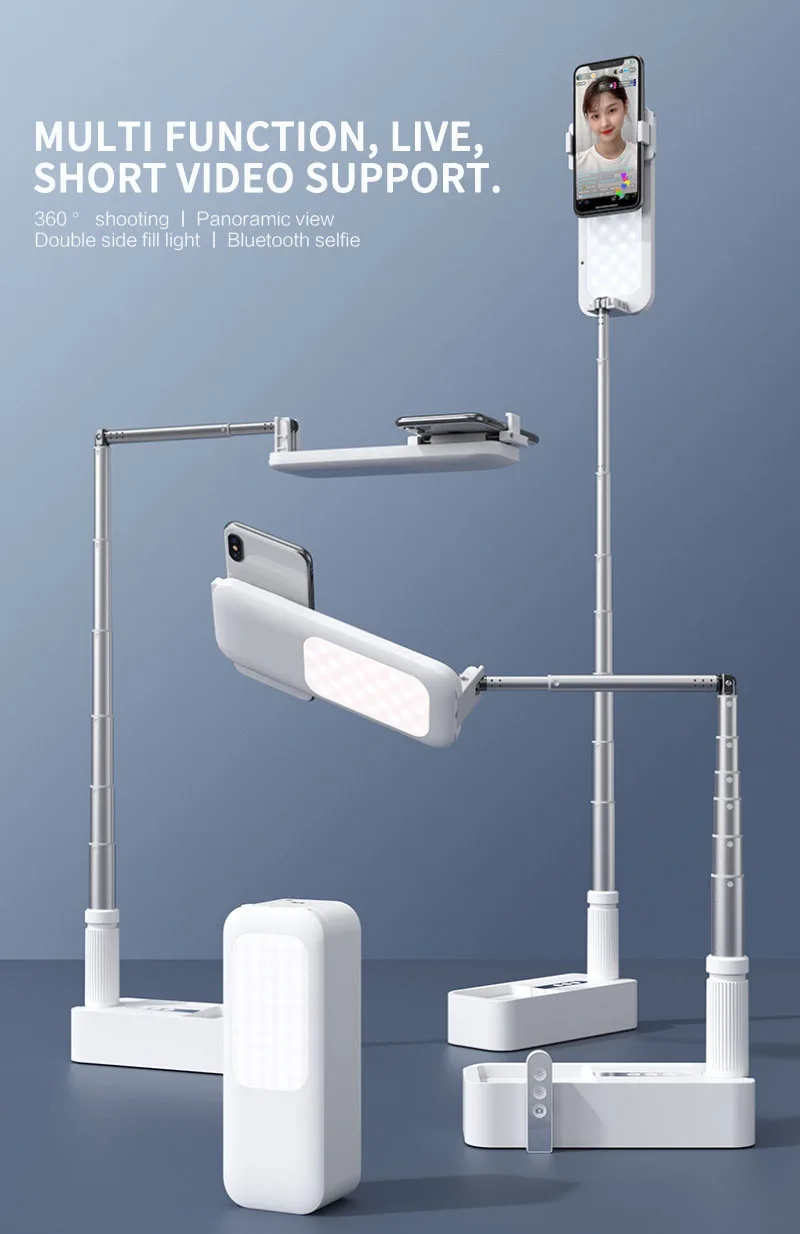 Держатель для телефона для живого видео с пультом дистанционного управления Портативный складной выдвижной беспроводной регулируемый светодиодный светильник для селфи