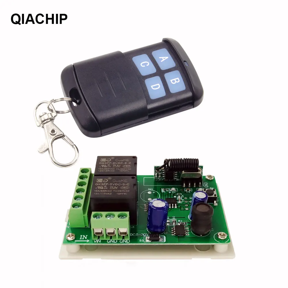 Универсальный беспроводной пульт дистанционного управления QIACHIP, 433 МГц, 6 в, 12 В, 24 В, 30 В постоянного тока, 2-канальный релейный приемный модуль для мотора дверей, гаражных ворот