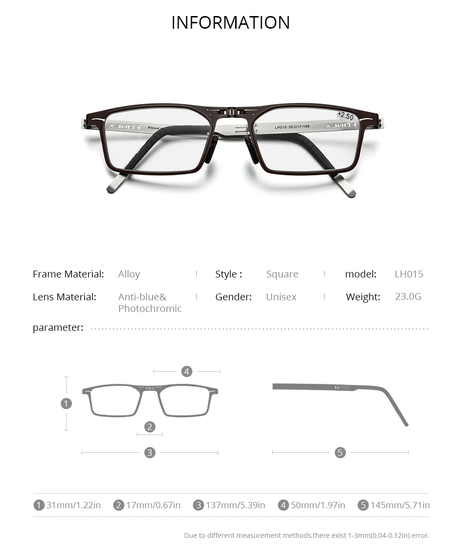 FONEX Очки для чтения складные без винтов, для мужчин и женщин, LH012