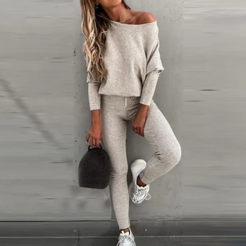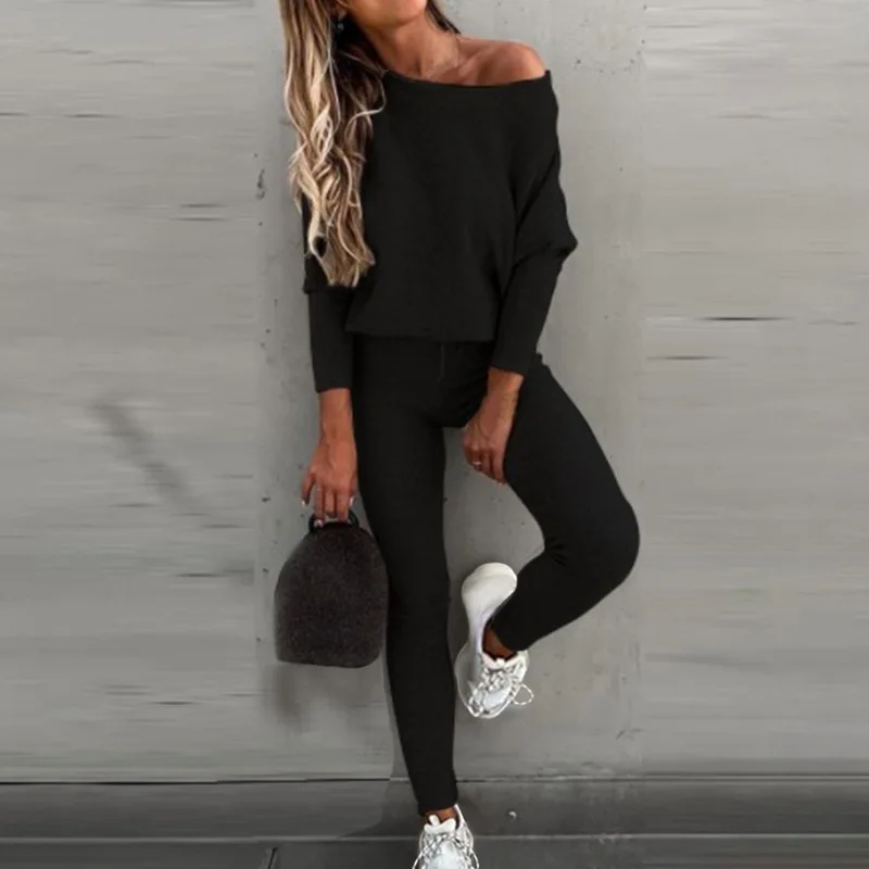 Костюм спортивный женский из блузки и штанов, с высоким воротником и длинным рукавом, осень 2021