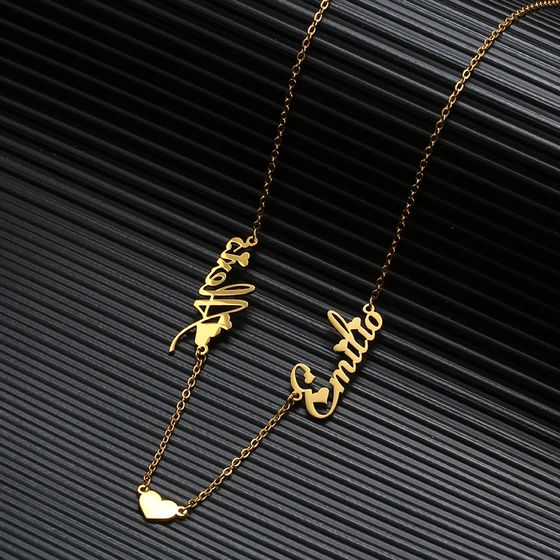 Ожерелье с подвеской в виде сердца с двумя именами на заказ, ювелирные изделия из нержавеющей стали на заказ, арабский чокер с надписью для женщин