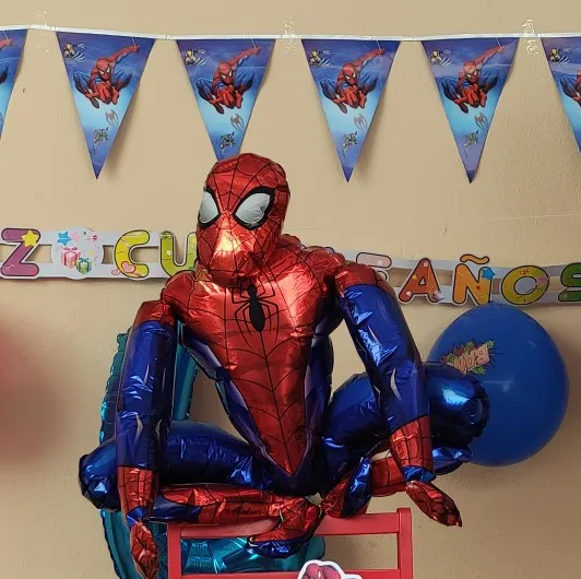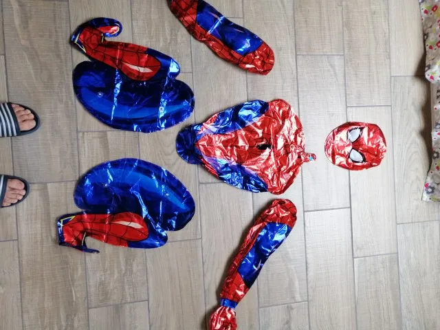 На фото Человек-паук выглядит больше, а также рассеивается. Я не знаю, был ли он проколот или потерял воздух на суставах. Дело в том, что вы должны были надуть его несколько раз, чтобы иметь возможность делать фотографии. Количество и остальные воздушные шары, как показано на рисунке. В любом случае, мой малыш любил это.