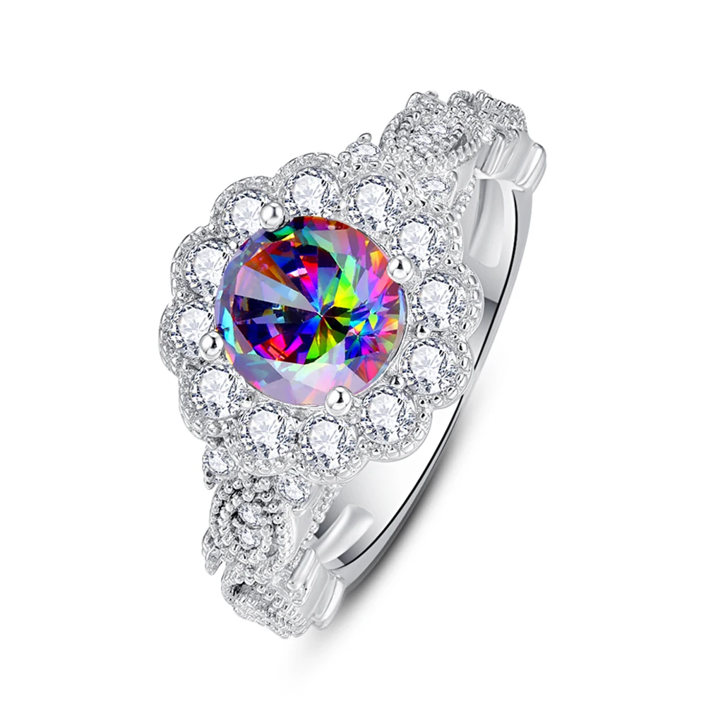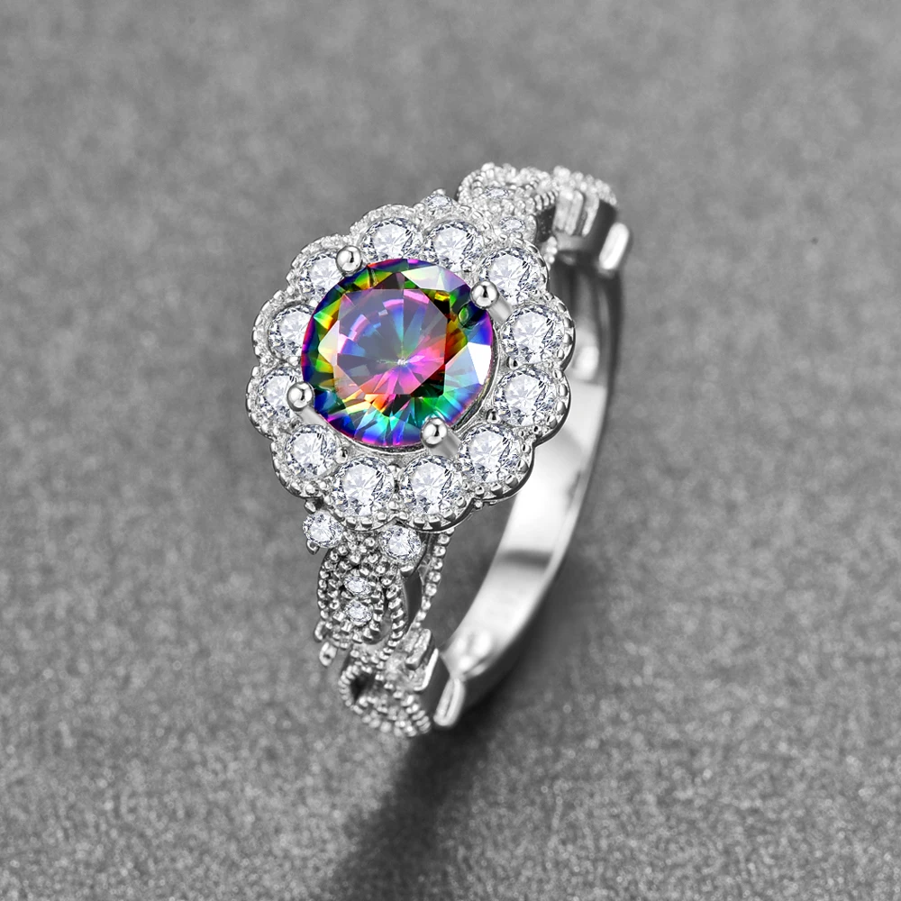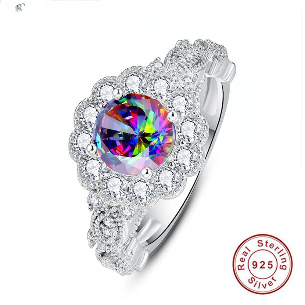 8*8 мм кольцо из натурального серебра 925 пробы с разноцветным радужным топазом, ювелирное изделие для свадебной вечеринки