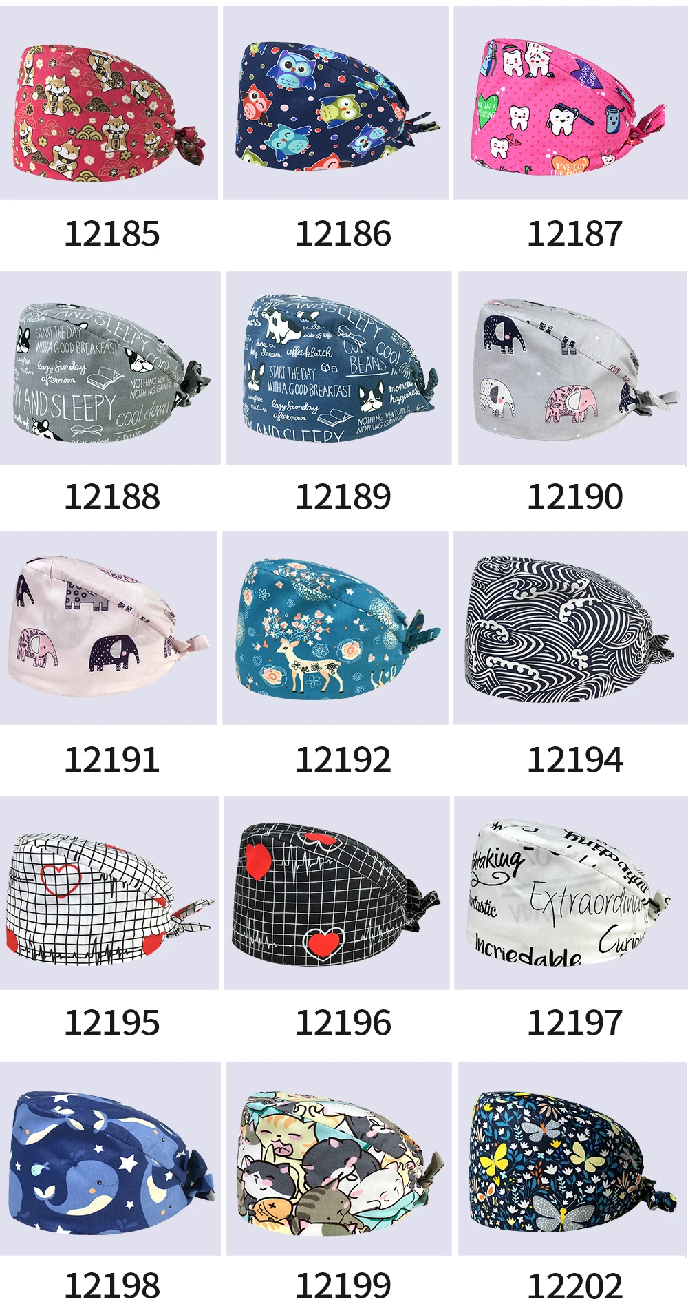 Шапка для медсестры с цветочным узором, регулируемая шапка с разным...