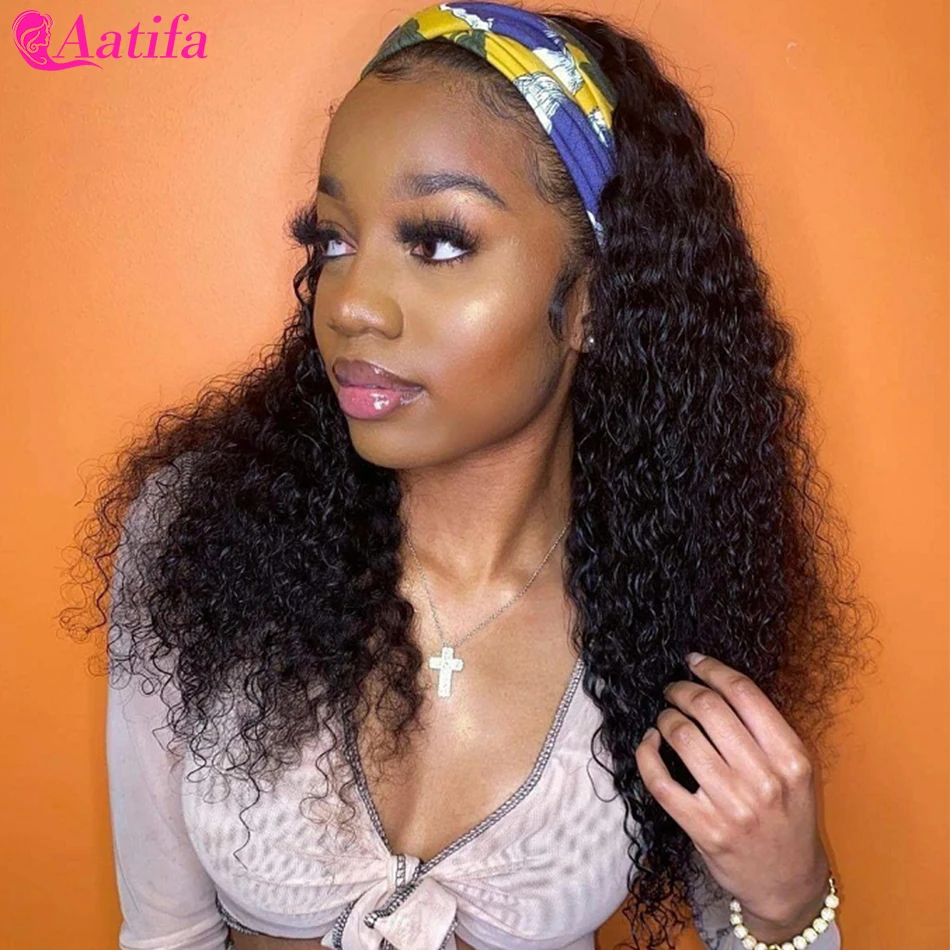 Парик с головной повязкой человеческие волосы парики перуанские свободные глубокая волна сцепление повязка манекен для шарфа парика естественный цвет 180% Плотность для черных женщин Aatifa