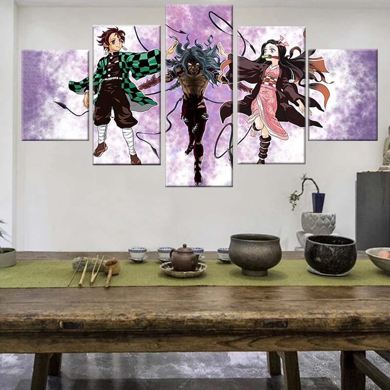 HD Печать на холсте, настенное искусство, 5 штук, фотография фотосессия, убийца демонов, киметасу, модульный постер, домашний декор для гостиной