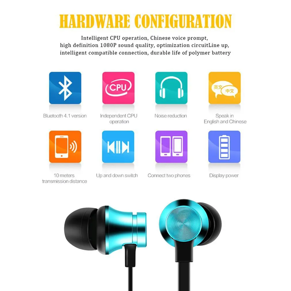 Магнитные беспроводные Bluetooth-наушники, стерео, спортивные, водонепроницаемые наушники, беспроводные наушники-вкладыши с микрофоном для IPhone 7, Samsung