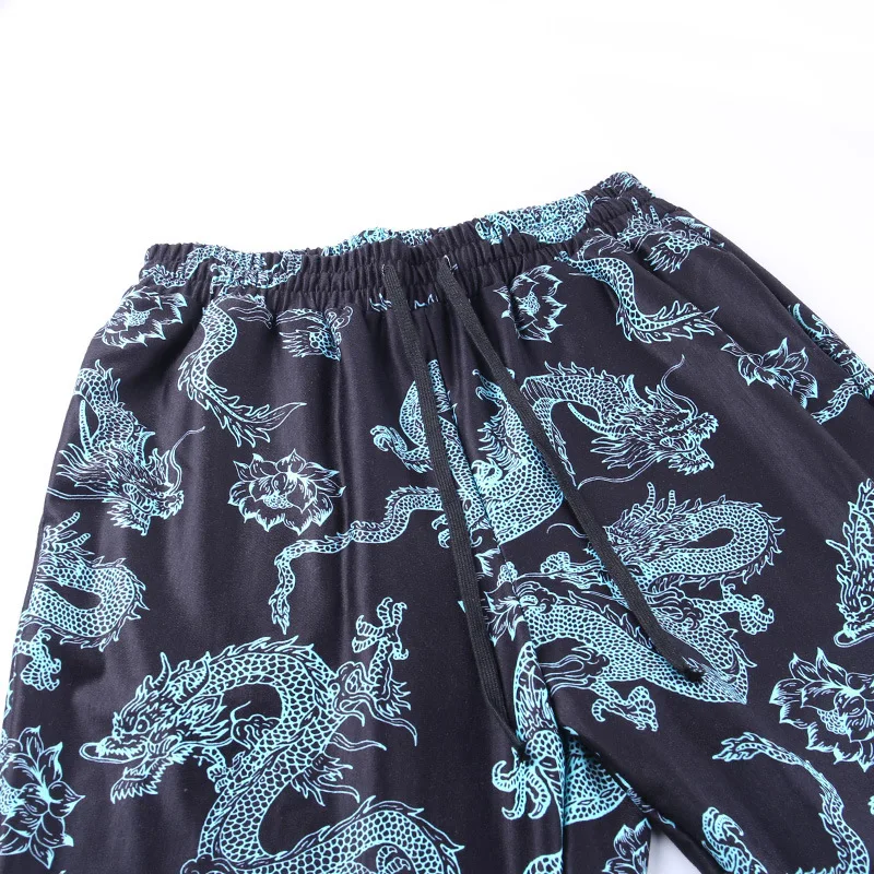 Женские длинные брюки с принтом дракона, повседневные свободные брю...