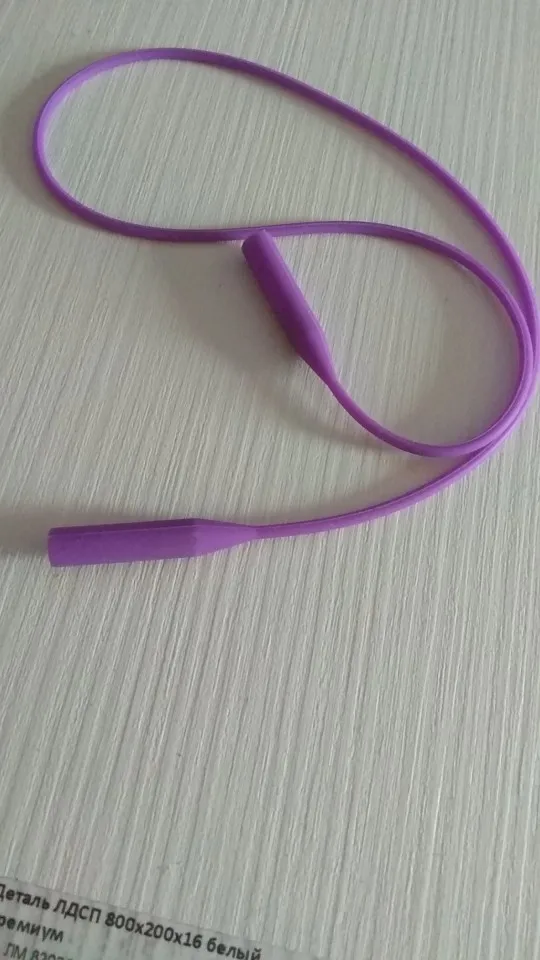 Ремешок прикольный, мягкий, но плотный силикон-резина. На детские очки спадает, но скотч не подводит никогда, намотала и сверху одела, носит уже пару недель, очень доволен. А чтоб держались на голове я прикрепила черный карабин. Спасибо продавцу, уже заказала второй, жду!.