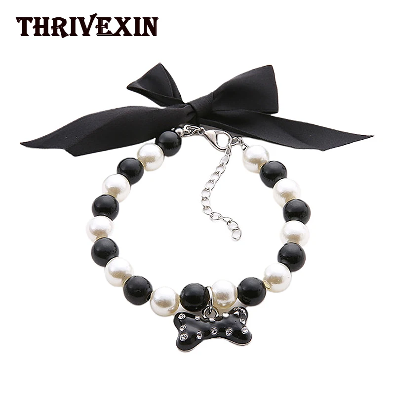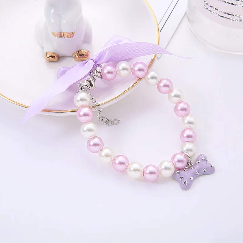 Ожерелье с жемчугом для собак и кошек, цепочка-ошейник, персонализированная подвеска в виде кости, товары для домашних животных, аксессуары из искусственного жемчуга, товары для домашних животных