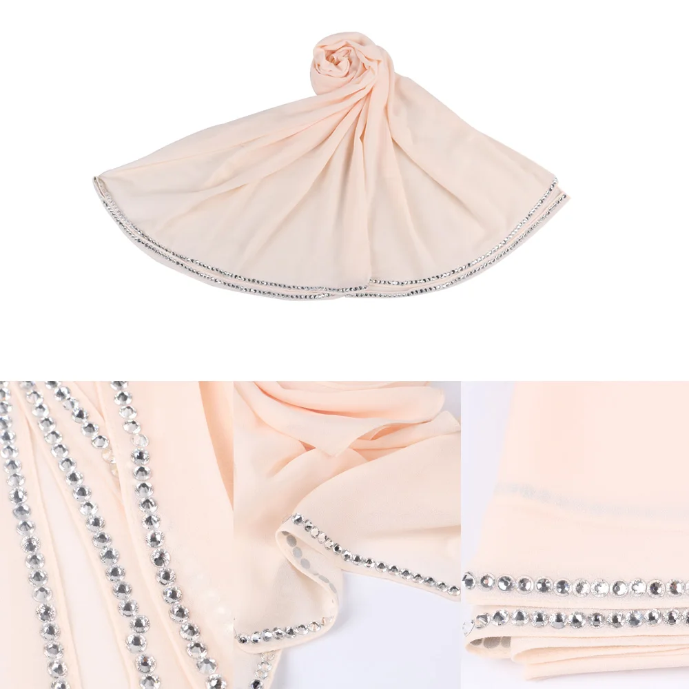 Женский шифоновый хиджаб Musilim, длинные шали со Блестящий сверкающий кристаллами, бриллиантами, стразы для праздника на ИД