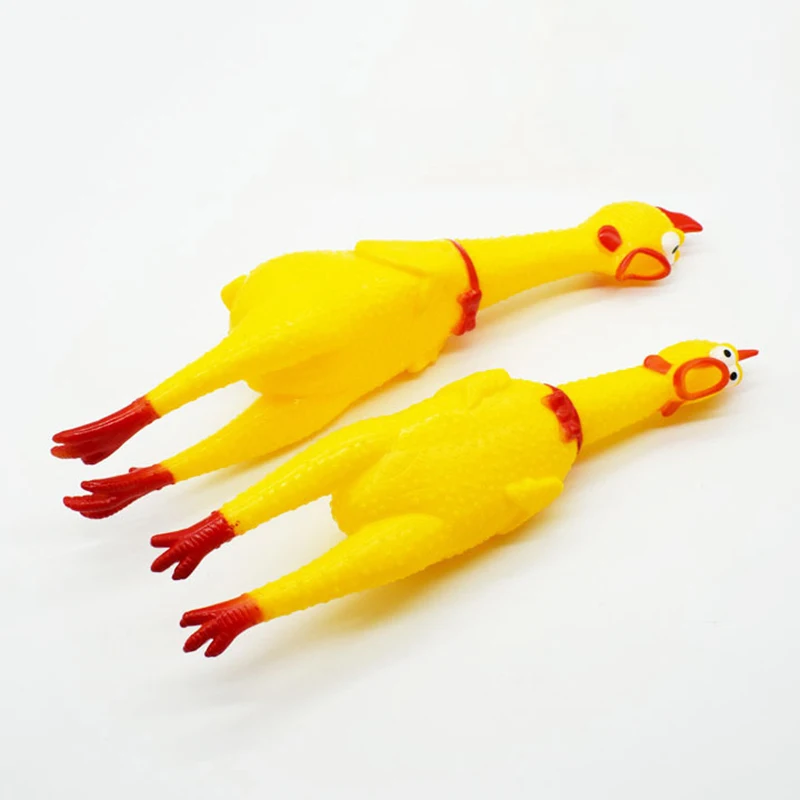 Вы можете нажимать или сжимать кричащая резиновая курица любым способом.
