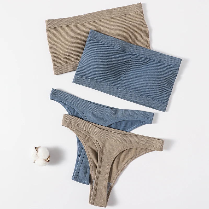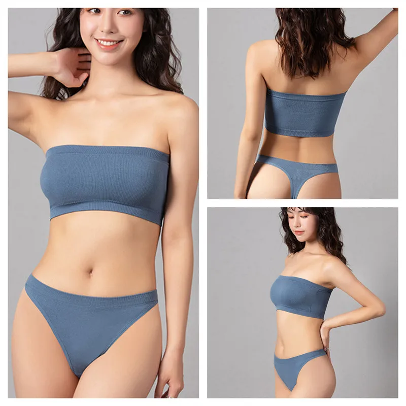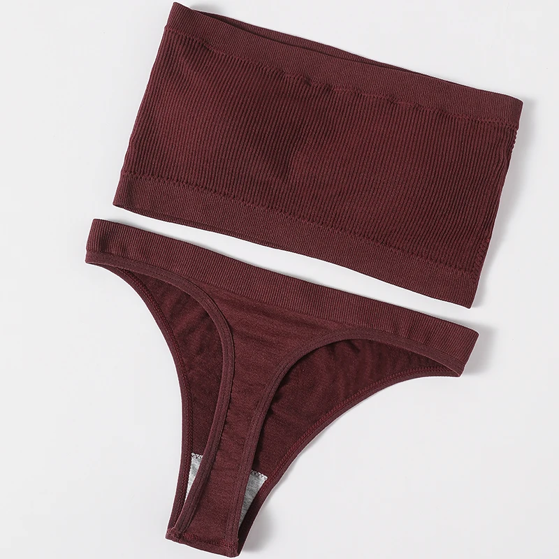 Женское Бесшовное сексуальное нижнее белье, бразильские трусики, комплект бикини, бюстгальтер пуш-ап, топ в рубчик, Женский Комплект бюстгальтеров-бандо