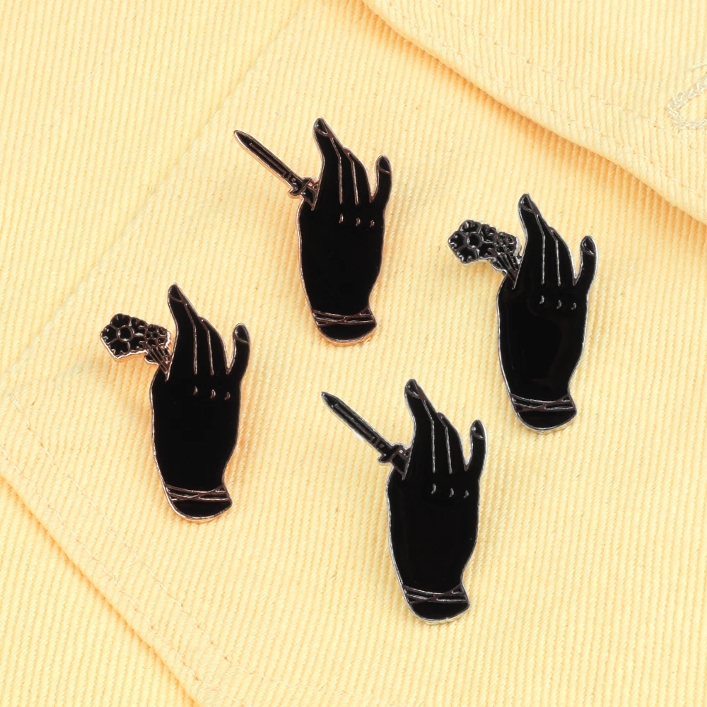 Новая креативная черная брошь в виде ведьмы, ручная ручка, розовый нож, кинжал, готические броши, Панк Эмаль, значок для женщин, ювелирные изделия, подарки