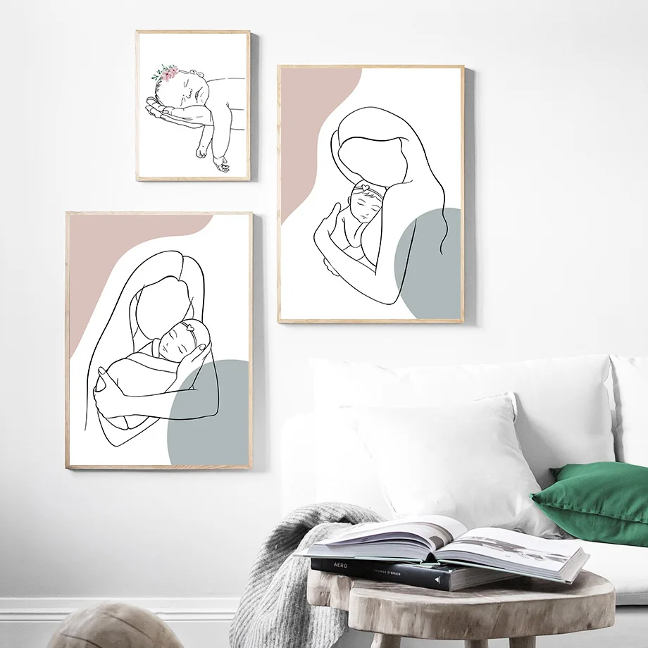 Настенная живопись с абстрактными линиями семейства матери и ребенка, настенный постер на холсте в скандинавском стиле для гостиной, домашнее украшение, живопись на стену