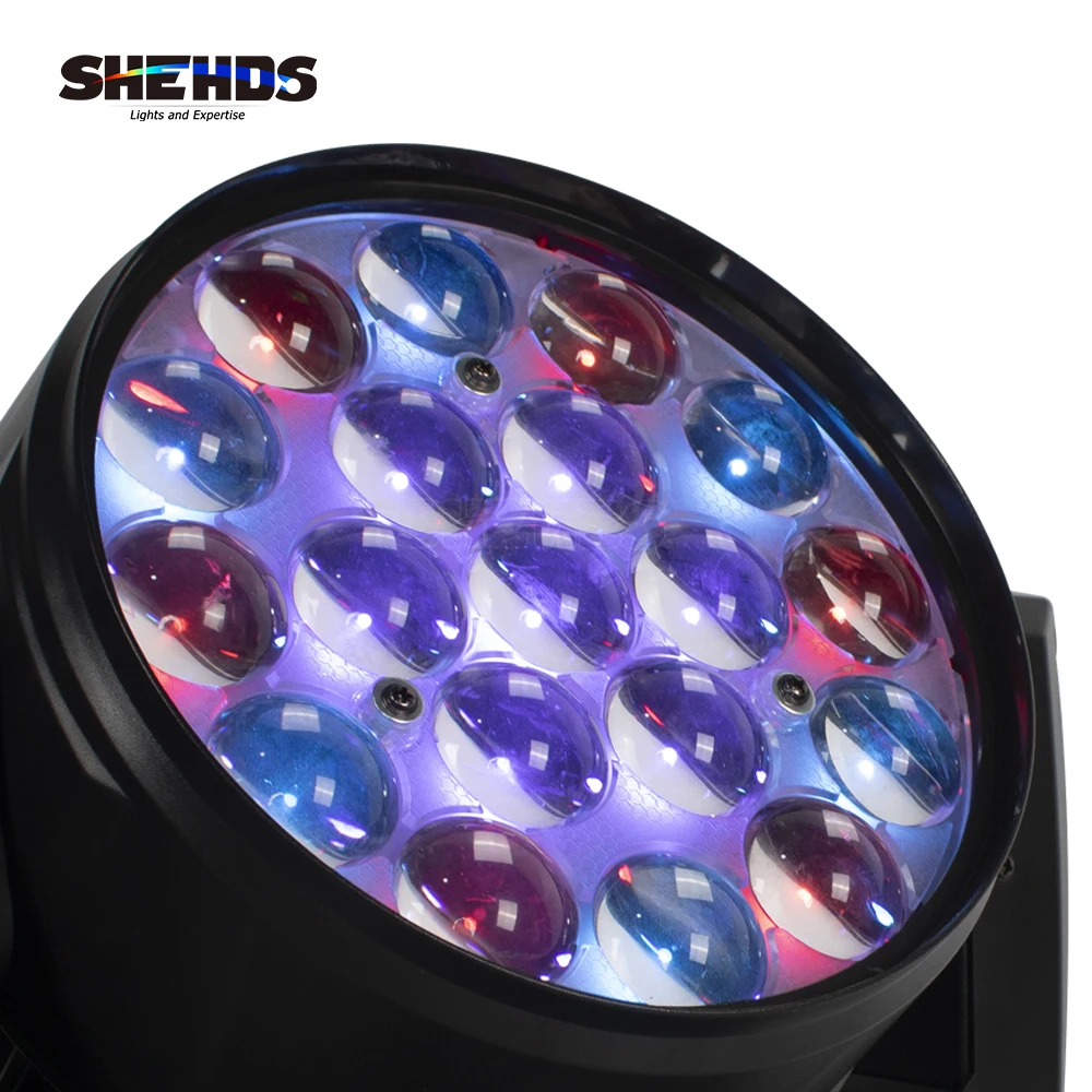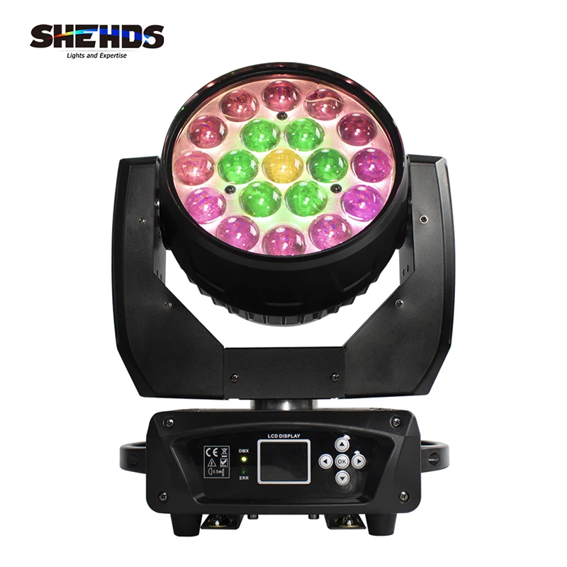 Новый светодиодный прожсветильник 19x15 Вт, RGBW-луч + промывка, зум, Подвижная головка, DMX, 1624 каналов, дискотека, церковная, ТВ-студия, оборудование для сценических эффектов