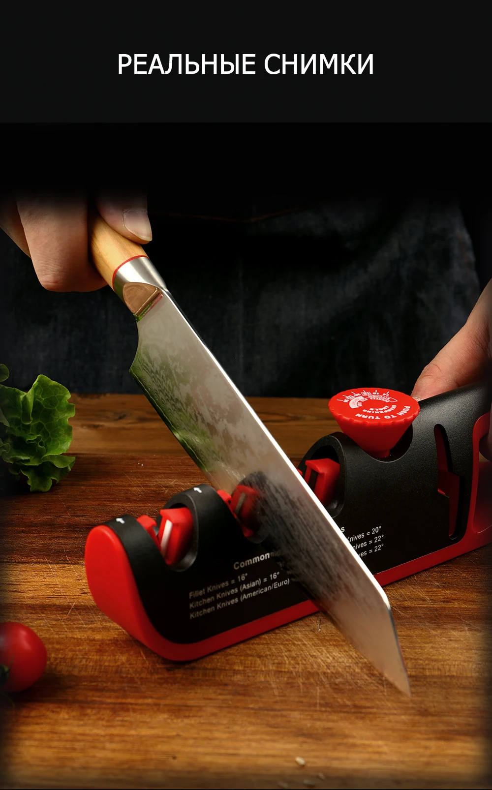Действительно точит. Хотя с углом заточки нужно приноровиться. Лезвие не должно быть убитым. Иначе уже не точит, а портит дальше. При чрезмерном нажатии или неровном движении могут быть волны и зазубрины на лезвии, тогда точилка уже не поможет. Выглядит фундаментально и дорого.