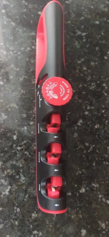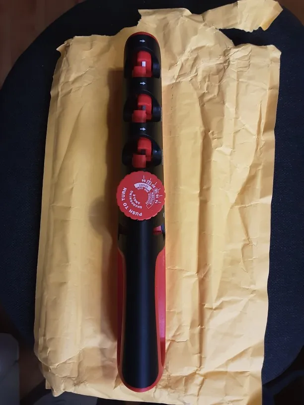 Хорошая точилка, очень быстро точит, нет инструкции на русском, но интуитивно всё понятно. Рекомендую точилку и продавца. До это пользовался точилкой кастетом и икеевской, эта намного лучше: хватит по 2 раза провести по выемкам для хорошей остроты