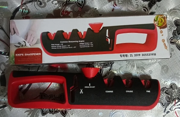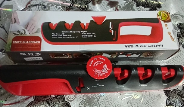 доставка быстрая. затачивает ножи хорошо .Угол заточки регулируется.я доволен.