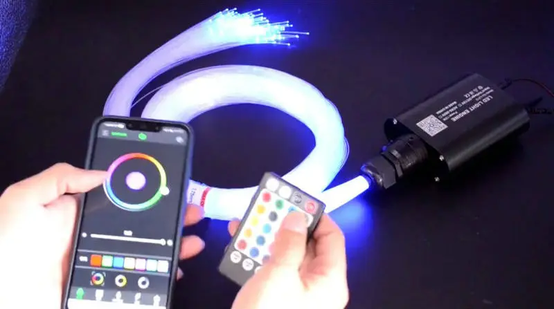 12 Вт APP музыкальный звуковой датчик, светодиодный волоконно-оптический потолочный Звездный источник двигателя + 0,75 мм светящийся на конце PMMA кабель, освещение для крыши, неба, атмосферы