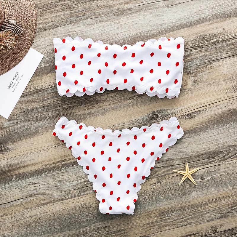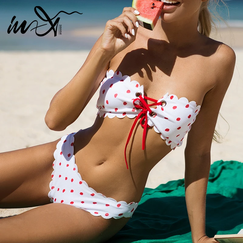 Бикини в горошек In-X 2021, купальник-бандо, Женское кольцо для повязки, купальник, женский купальный костюм-бандо с зубчатым узором, комплект из 2 предметов, Новинка