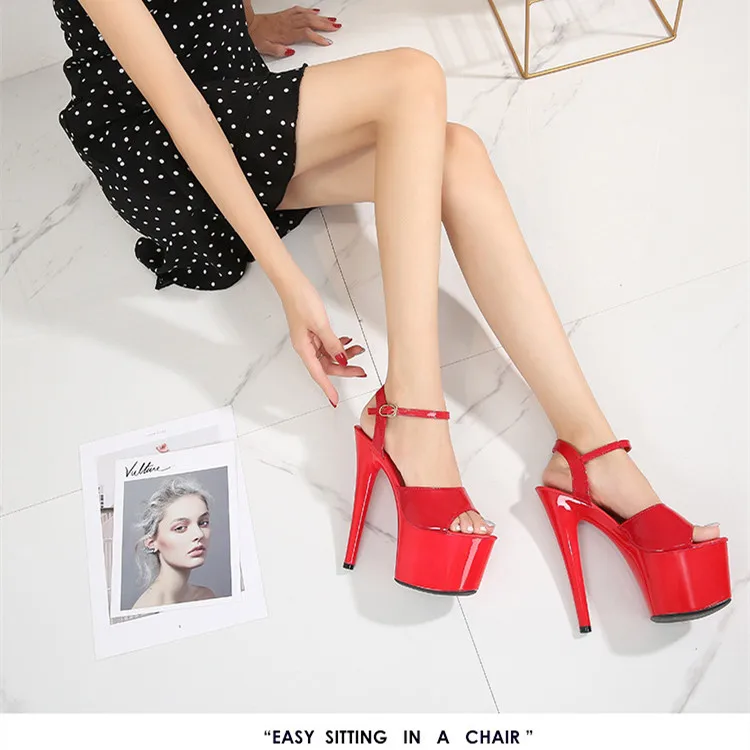 Женские сандалии Высокая платформа сандалии каблуки 17 см пикантные женские туфли на высоком каблуке модные красные каблуки с ремешками