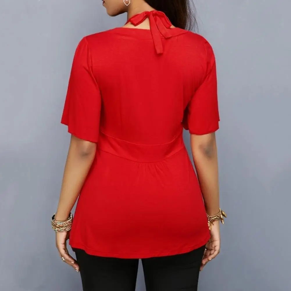 Футболка женская однотонная с V-образным вырезом, халтер, короткий рукав, пикантная одежда, большие размеры 5XL, на лето