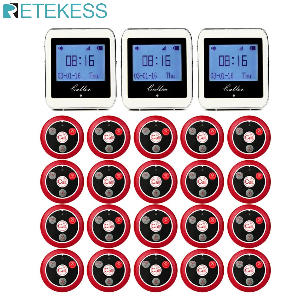 RETEKESS Беспроводная система вызова официанта обслуживание гость пейджер 3 шт часы приемник + 20 шт Кнопка вызова для ресторана бар кафе